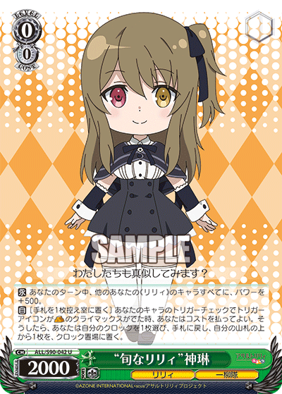 【永】 あなたのターン中、他のあなたの《リリィ》のキャラすべてに、パワーを+500。