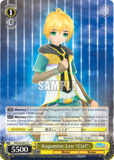 CONT Memory If a card named "Kagamine Rin "Soleil"" is in your memory, this card gets +2000 power.