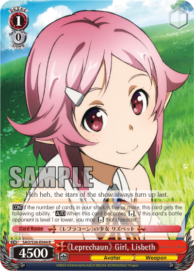 CONT If the number of cards in your stock is five or more, this card gets the following ability. "AUTO When this card becomes REVERSE, if this card's battle opponent is level 1 or lower, you may REVERSE that character."