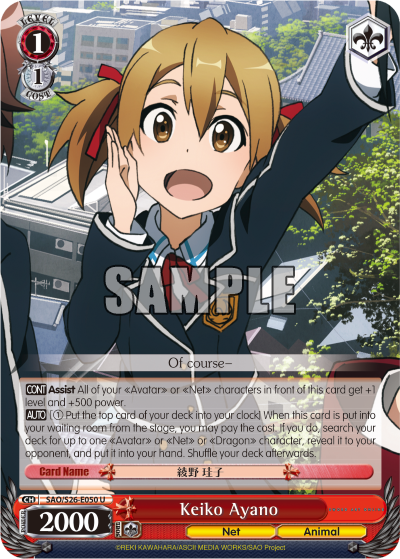 AUTO [① Put the top card of your deck into your clock] When this card is put into your waiting room from the stage, you may pay the cost. If you do, search your deck for up to one 《Avatar》 or 《Net》 or 《Dragon》 character, reveal it to your opponent, and put it into your hand. Shuffle your deck afterwards.