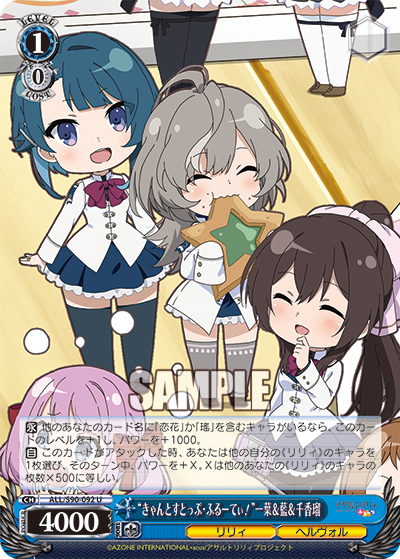【自】 このカードがアタックした時、あなたは他の自分の《リリィ》のキャラを1枚選び、そのターン中、パワーを+X。Xは他のあなたの《リリィ》のキャラの枚数×500に等しい。