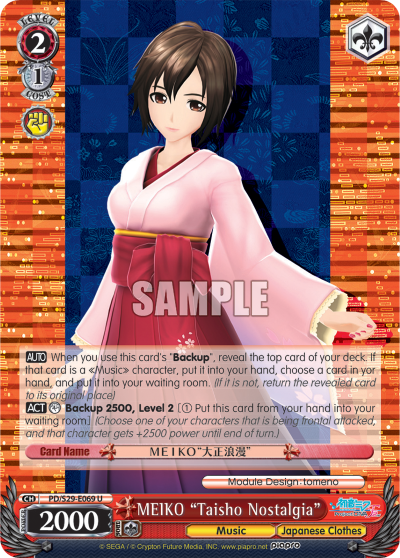AUTO When you use this card's "Backup", reveal the top card of your deck. If that card is a 《Music》 character, put it into your hand, choose a card in your hand, and put it into your waiting room. (If it is not, return the revealed card to its original place)