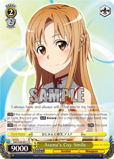 CONT If the number of other 《Avatar》 or 《Net》 characters you have is three or more, this card gets "AUTOEncore[Put a character from your hand into your waiting room]".